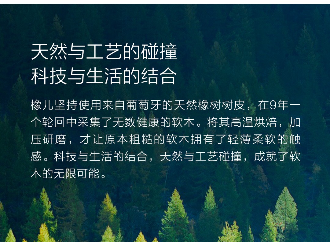 采用天然软木的顶尖质感面材, 一纹一络都是与大自然的对话